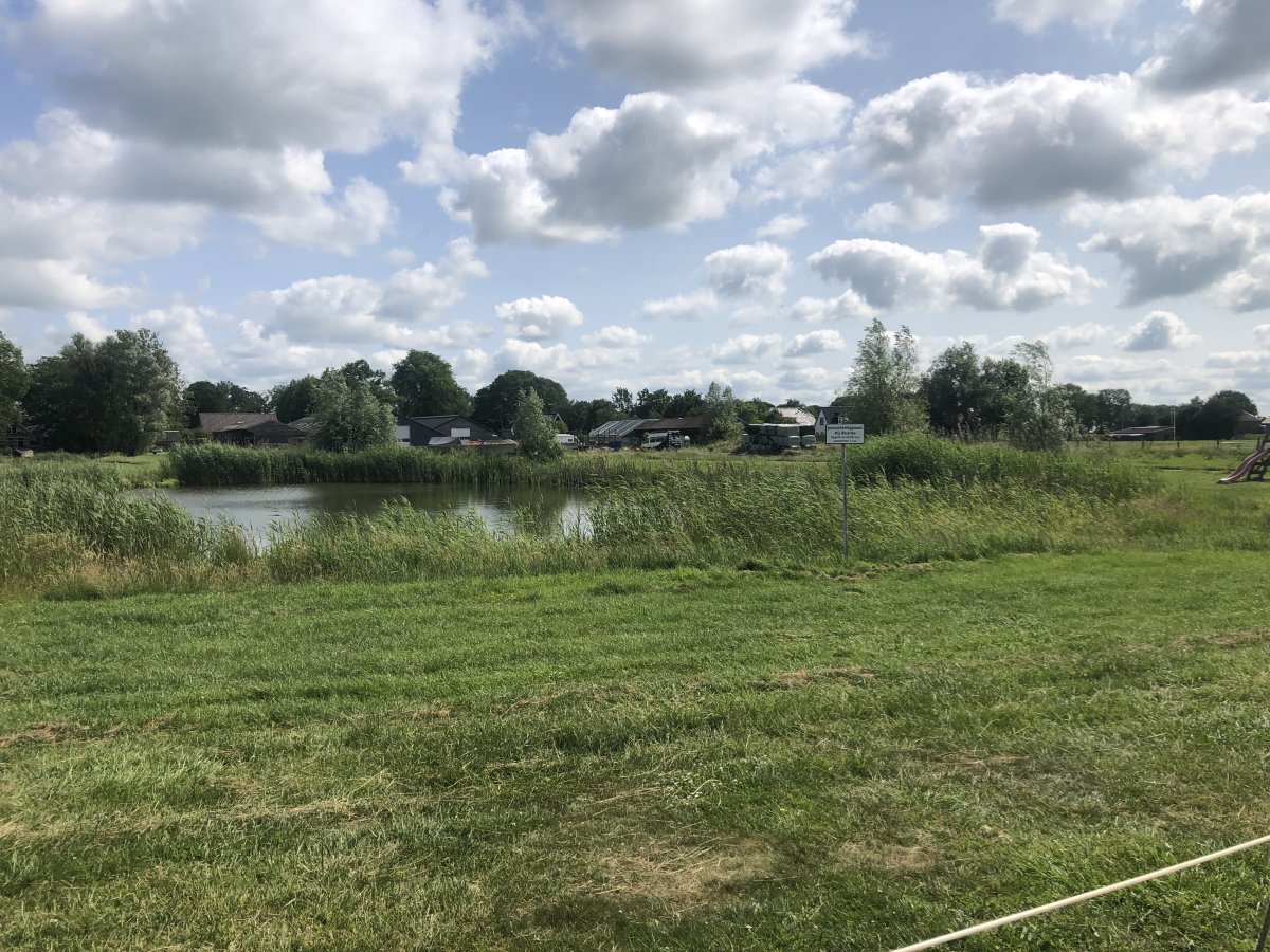 Die Anleger von Marrekrite gefallen uns nicht, wir fahren weiter. Am Anleger von Weigea ist aber noch ein Platz frei. Das Anlegemanöver gelingt uns perfekt. Wir übernachten diesmal am Weiher in der Wiese. Es duftet nach Landluft, die Vögel zwitschern, in der Ferne hört man die Autobahn.