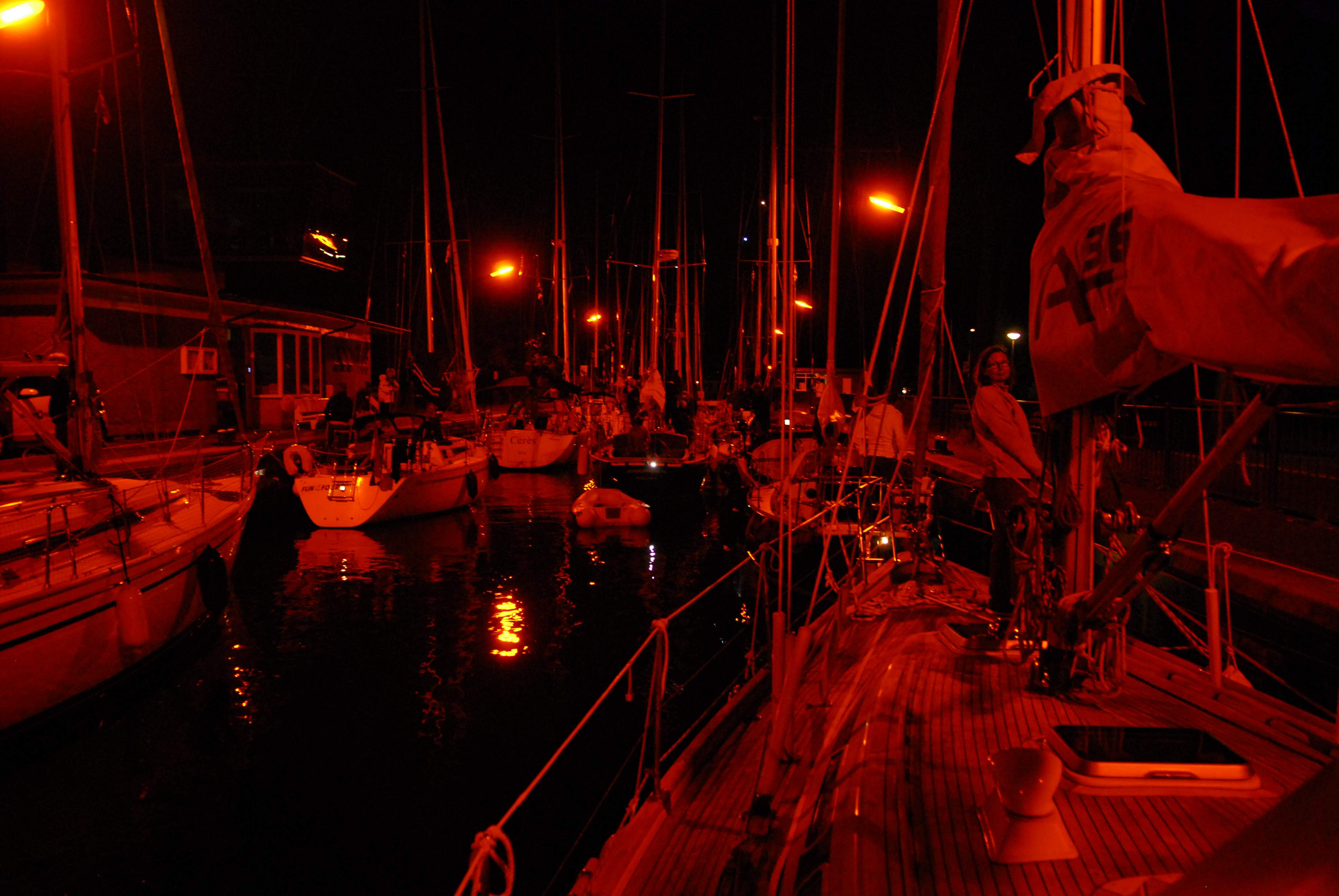Um halb neun legen wir am Wachtsteiger an, melden uns beim Schleusenwart für den Konvoi durch die nächtliche Stadt an. Und dann wird wieder gedöst…