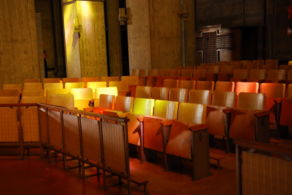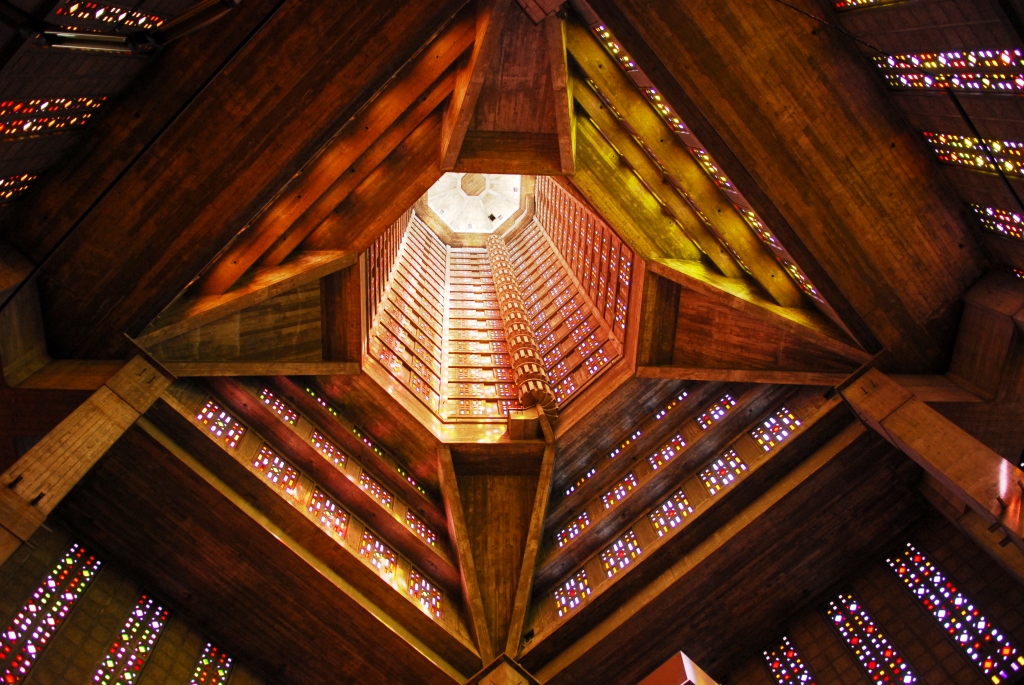 I am too tired for a complete English version today! We visited the very impressing church of St. Joseph, with its massive tower: Made of concrete its 12768 windows in seven colors, shaded from dark to light add charm do its interior. While the building was planned by a man, the charm was added by Marguerite Huré, a glass artist.