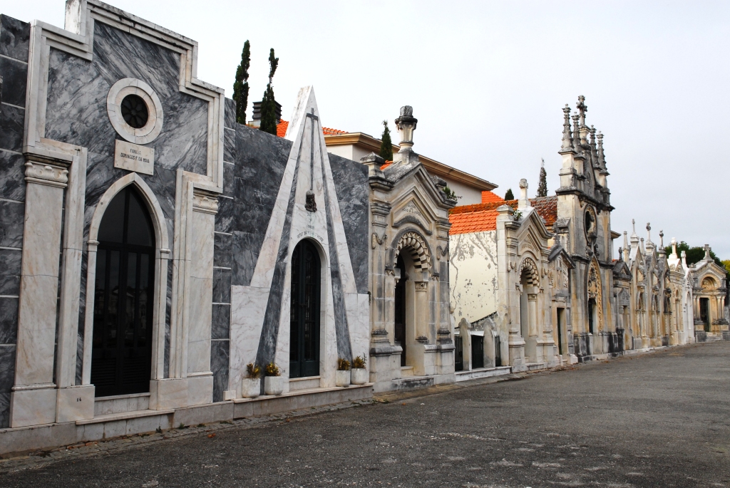 Die alten Kähne, in denen angeblich einst Muscheln eingeholt wurden und heute Touristen durch die drei Kanäle gefahren werden, ähneln Gondeln. Sie sind liebevoll und individuell, oft mit viel anzüglichem Humor bemalt. Es gibt wunderschöne, gut erhaltene Häuser – und gleich daneben heruntergekommene Wohnblocks, dann wieder liebevoll verzierte alte Hauser, von Unkraut überwuchert. Auf einer Straßenseite verführt ein exquisites Möbelhaus zum Kauf, gegenüber bröckeln die Azujelos von den Wänden, die Türen hängen schief in den Angeln. In Aveiro steht das schickste, modernste und hübscheste Einkaufzentrum, das wir bisher in Portugal gesehen haben. Direkt dahinter ist der Friedhof, mit alten Familiengruften, aber auch mit neuen. In den Gruften stehen die Särge in Regalen gestapelt, Blumen und Kerzen davor. Die modernen ähneln marmornen Wartehäuschen an Bushaltestellen – oder auch den Geschäften im Shopping Center davor…