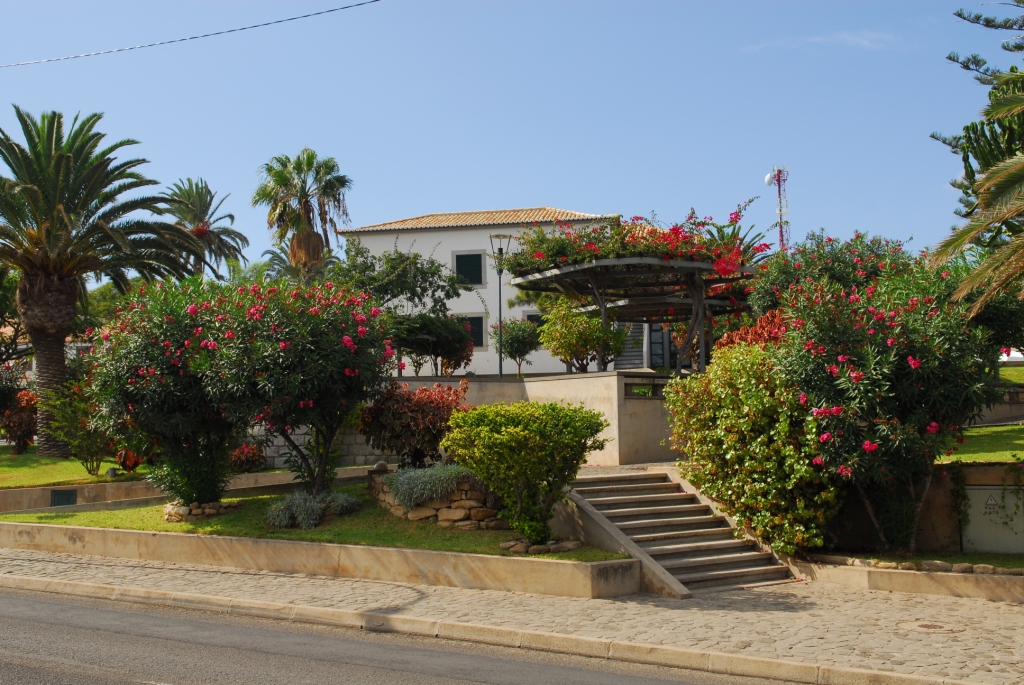 Wir spazieren entlang der Hauptstraße in den Ort. Was fürchterlich klingt, ist beschaulich: Autos fahren hier praktisch nur, wenn die Fähre kommt oder geht. Links liegt der Strand, bald stehen auf beiden Seiten hübsche, gepflegte Häuschen in blühenden Gärten. Vom Strand in der Ortsmitte geht ein Pier ins Meer hinaus, davor ist ein Festplatz, ein Spielplatz, ein gut sortierter Supermarkt – wie ich später erfahre, der einzige auf der Insel – und ein paar Imbiss- und Souvenir-Standeln. Der Duft von Bolos de Caco, einer lokalen Brotspezialität, steigt in unsere Nase. Wir haben Hunger so kaufe ich zwei, je eines mit Chorico und eines mit Knoblauchbutter, für insgesamt 4 Euro. Wir erwarten einen kleinen Imbiss und bekommen das Abendessen gleich mit: Das Chorico Brot essen wir vor Ort, dann sind wir erst mal satt. Das zweite Brot wird dick mit Knoblauchbutter beschmiert, ich schätze mindestens die Menge, die in einer Meggle Packung ist. Wir nehmen es mit nach Hause, nochmal kurz geröstet ist es gemeinsam mit Tomatensalat ein köstliches Mal.