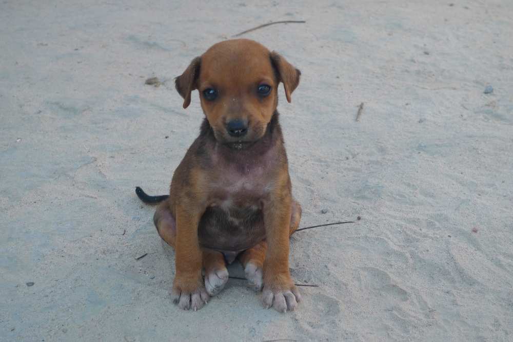 Ein Wurf Welpen spielt im Staub, wir können gerne einen mitnehmen, sagen die Nachbarn. Diesen Augen widerstehen!