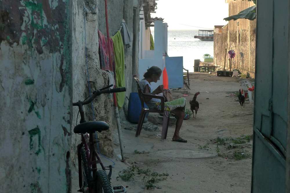 Die Dorfstraße ist neu gepflastert. Am Platz spielen die Kinder Fußball. Wir werden neugierig beäugt. Vor den Häusern sitzen die Alten, so wie überall auf der Welt, und schauen, wer da vorbeigeht. Alle grüßen mit diesem hinreißenden baianischen Lächeln – als ob die Sonne aufginge! Wie ich es liebe!