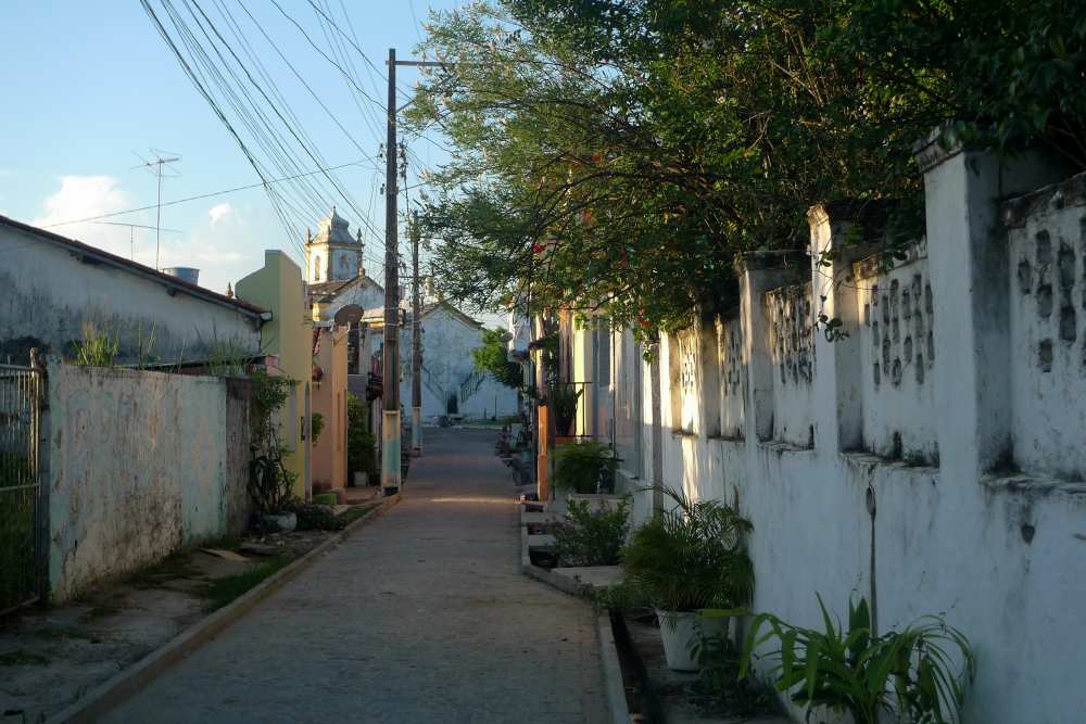 Um die Ecke spielen ein paar Männer lautstark Domino auf der Straße vor der Kneipe. Die Frauen sitzen am Tisch daneben, wieder grüßen alle freudestrahlend und mit dem Daumen nach oben. Carne do Sol hat der Wirt nicht, aber Carne Seca aus dem Sertão, mit Puree de Aipim. Auch gut! Flugs wird ein Tisch für uns freigemacht, kaltes Bier gebracht und bald auch schon eine Schüssel mit Essen und drei Teller. ‘Nen Stern würde ich dem Koch nicht dafür geben, doch es ist schmackhaft, spottbillig und wir fühlen uns willkommen und wohl. Derweil walken Frauen ihre abendliche Runde, Väter tragen ihre Kinder herum, Pärchen bummeln Hand in Hand vorbei – so gut wie alle lächeln uns an.