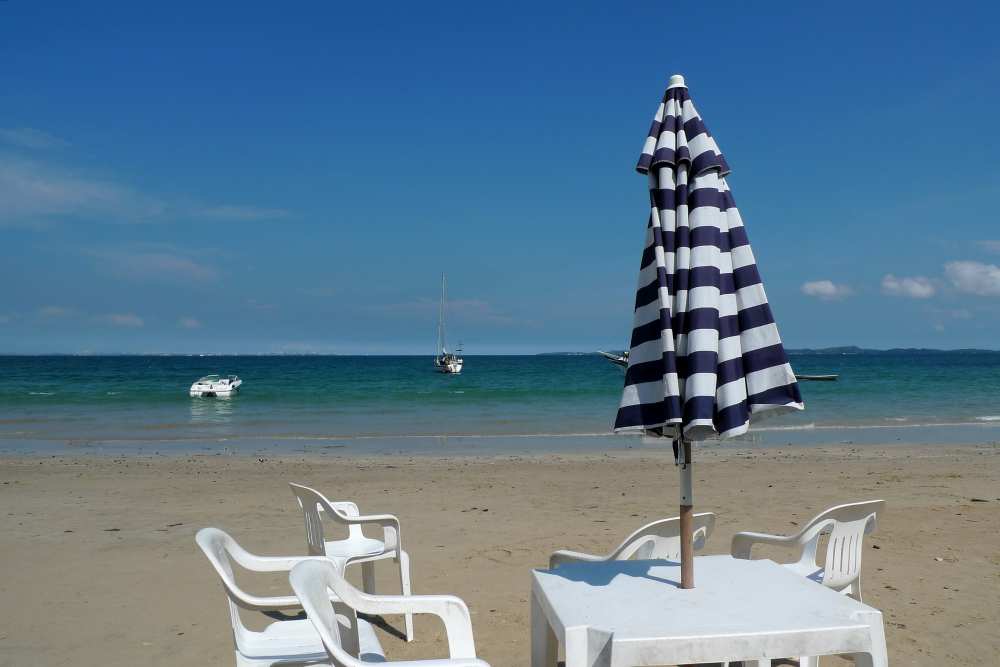 Letztes Wochenende luden wir sie alle ein, mit uns zwei Tage lang in der Bucht zu segeln. Weder Dalva noch Lucas waren je in Itaparica oder auf einer der Inseln gewesen. Wir motorten in die kleine Bucht im Süden der Ilha dos Frades. Die Schoner Boote legten gerade Richtung Itaparica ab, der schöne Strand blieb uns allein überlassen. Leider war uns schnell klar, warum: Die Strandbars dort sind unverhältnismäßig teuer. Also tranken wir nur ein Bier, Dalva, Cássia, Lucas Freundin und ich stapften die Treppe zu der kleinen, weiß-blau gestrichenen Kirche hinauf. Dalva war entzückt: Diese Aussicht! Das türkisfarbene Meer, die grünen Bäume davor, im Hintergrund die Stadt – ja, es ist schön hier! Mich faszinierten allerdings die Geier am meisten, die fast zum Greifen nah über die Klippe und unsere Köpfe segelten. Wunderschöne Vögel sind das!