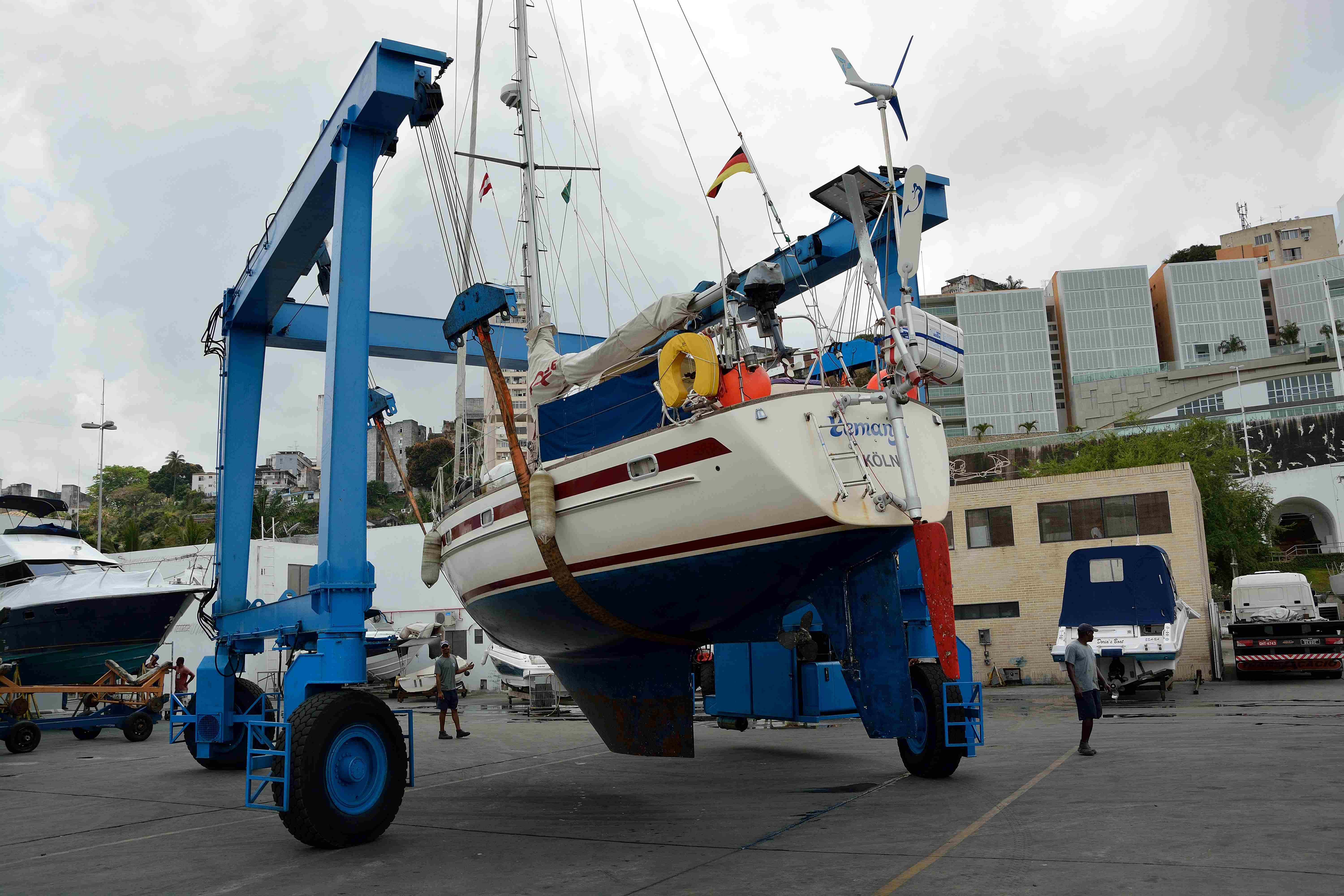 Allerdings hatte die Mariana an unserem Wunschdatum keinen Krantermin mehr frei. Den haben wir dann schnell persönlich organisiert, nur Carlos war nun nicht aufzutreiben. Ihn fanden dann Leentje und Patrick. Wir, also Yemanja und Silmaril, sollten um sieben Uhr morgens in der Marina sein, damit ein Taucher schon mal die Muscheln abkratzen konnten, um acht könnten wir dann raus und Carlos hätte pro Schiff drei Leute abgestellt. So weit so gut – für baianische Verhältnisse wirklich gut gelaufen.
