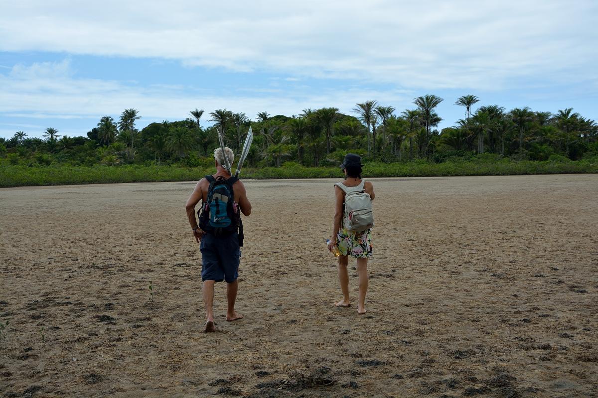 Blanca genießt offensichtlich die Gesellschaft, doch Tomy und ich haben die Uhr und den Sonnenstand im Blick, die Tide im Kopf: Wir müssen durch den Sumpf zu unserem Dinghi, dieses vermutlich noch ein paar Meter tragen – ich will das bei gutem Licht tun. Die Krebse fliehen vor mir, das weiß ich, doch zu oft bin ich schon bis zu den Knien im Sumpf versunken! Wenn ich sehe, wohin ich trete kann ich das vielleicht vermeiden.