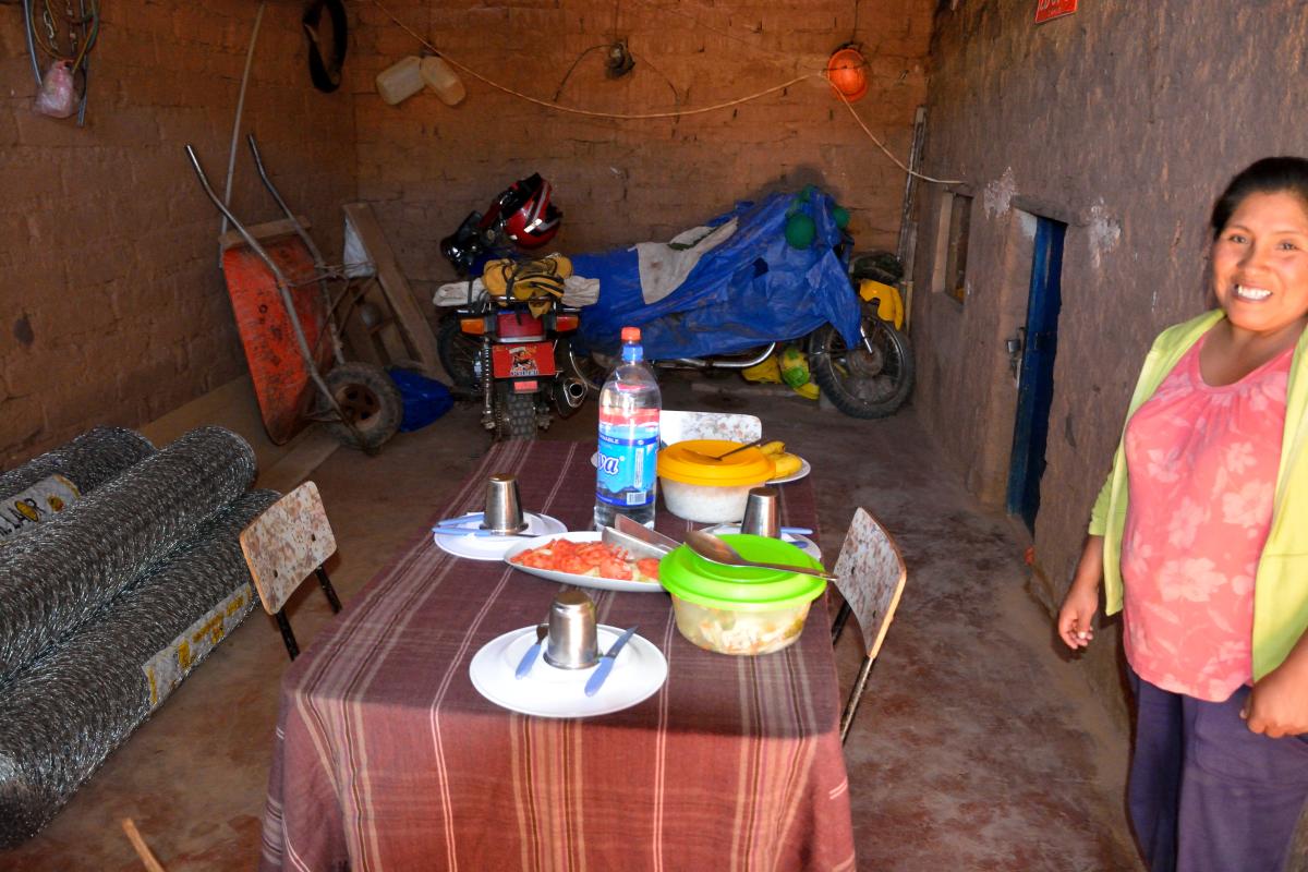 Unser Mittagessen nehmen wir in einem Adobedorf in einer Art Garage ein.