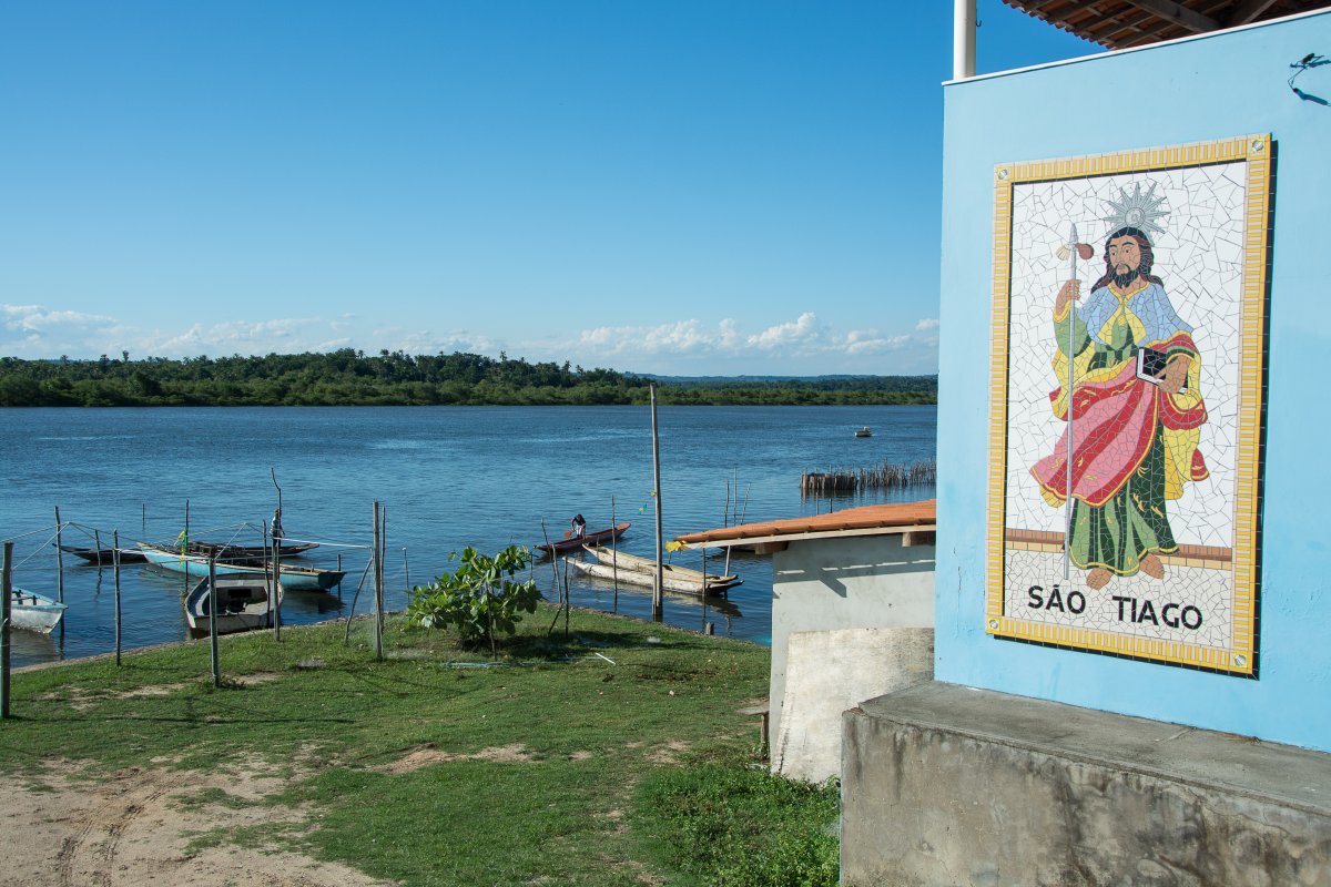 Sao Tiago de Iguape: Geht durch nicht kartographierte Gewässer, am rechten (flussaufwärts) Uferrand halten, bei einlaufenden Wasser fahren. Kleine Geschäfte für den täglichen Bedarf, morgens fährt ein Gemüsewagen durch den Ort. Bar, kein Restaurant