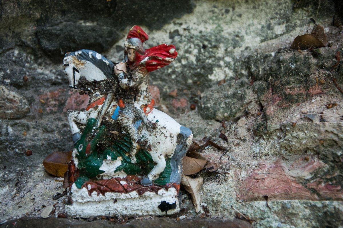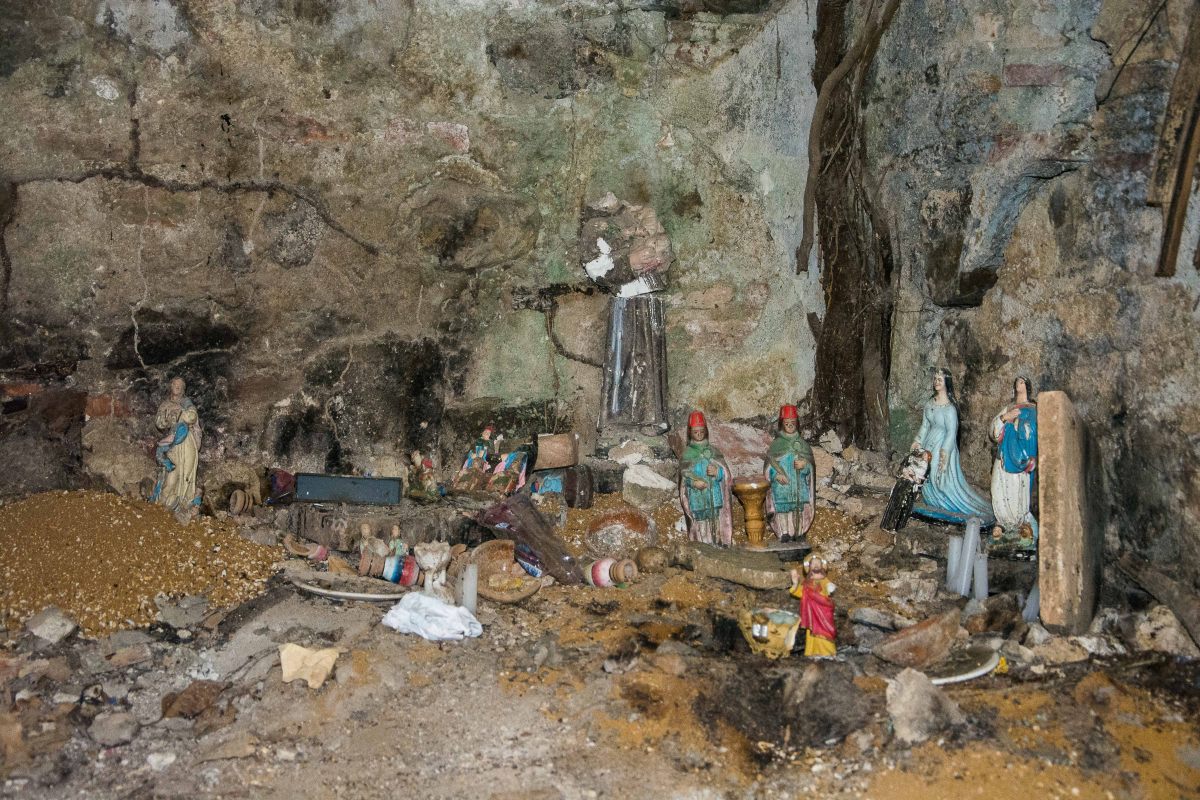 Und doch wird sie noch sakral genutzt: Maria, Antonius, Cosmas und Damian, Georg, der Drachentöter und ein koketter Heiliger, der uns unbedingt seine am Oberschenkel tätowierte Rose zeigen will stehen in jeder Nische, umgeben von Kerzenwachs. Was genau hier verehrt wird, kann ich nicht sagen: Ogum oder der Heilige Georg, Ibeji oder Cosmas und Damian, Yemanja, Oxum oder Maria? Candomble oder Heiligenkult? Sie wünschen uns alle eine gute Reise…