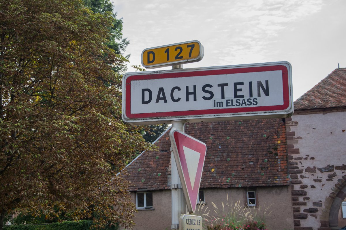 Tomy und ich haben einander am besagten Fuße des Dachsteins, oder besser der Scheichenspitz, in der Ramsau, kennengelernt. Deshalb muss ich mir auch unbedingt den Ort Dachstein im Elsass ansehen. Und ein Foto vom Ortsschild Dorlisheim machen, denn so heißt eine liebe Freundin. Ein Bergheim gibt es hier auch, aber da fuhren wir nicht durch. Wir mieden auch Orschwiller und Orschwihr.