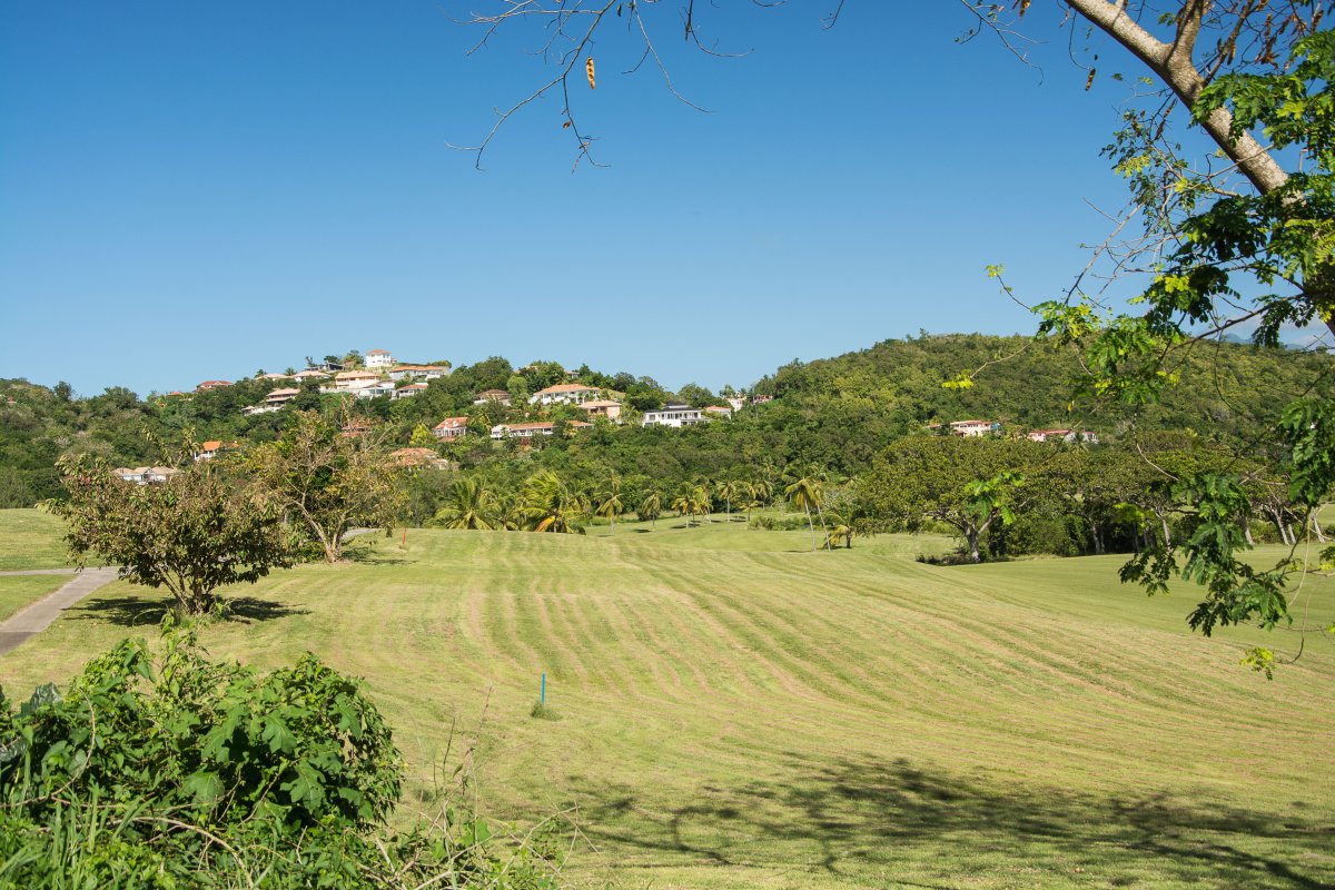 In Trois Ilets steigen wir vor dem Golfplatz aus. An dem hast du mal gewohnt, sagst du, doch er ist groß! Die Hauptstraße, die an ihm entlangläuft, hat keinen Gehweg, also mache ich ein paar Fotos vom rundherum. Von Hütten ist nicht mehr viel zu sehen, es dominieren mehr hübsche kleine Steinhäuser, in der Ferne ein Hotel: Ich denke, du würdest es nicht wiedererkennen!
