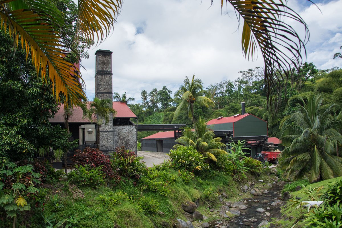 Wir fahren weiter nach Macouba zur Destillerie JM. Die Gebäude sind außen recht modern, drinnen arbeitet immer noch die alte Dampfmaschine. Der Rundgang ist nett gemacht, immer wieder gibt es sprechende Bänke, die auf Knopfdruck etwas über den Zuckerrohranbau und die Rumbrennerei erzählen – auf Französisch natürlich. Nur eine Schautafel ist klar: Zuckerrohr ist eine chemische Fabrik, die aus Sonnenlicht und Kohlendioxid Sauerstoff und besonders viel Zucker herstellt! Zucker ist also quasi gespeicherte Sonnenenergie – deshalb schmeckt er wohl auch so gut! Weniger romantisch ausgedrückt heißt der Vorgang Photosynthese…