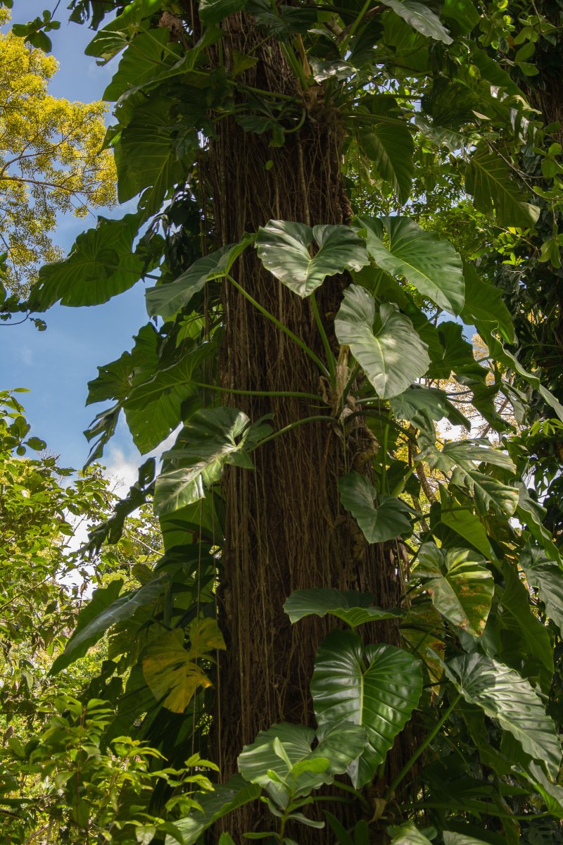 Anfangs ist der Weg gut ausgebaut. Links und rechts sind die Bäume von Philodendren und anderen Kletterpflanzen überwuchert, am Wegesrand blühen hübsche Blümchen und Blumen. Gar manches davon steht auch auf deutschen Fensterbänken.