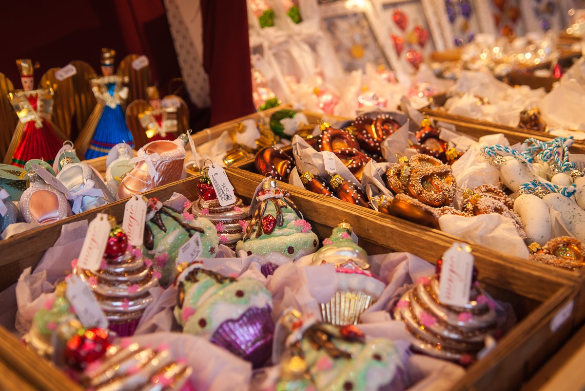 Christbaumkugeln am Weihnachtsmarkt am Rathausplatz