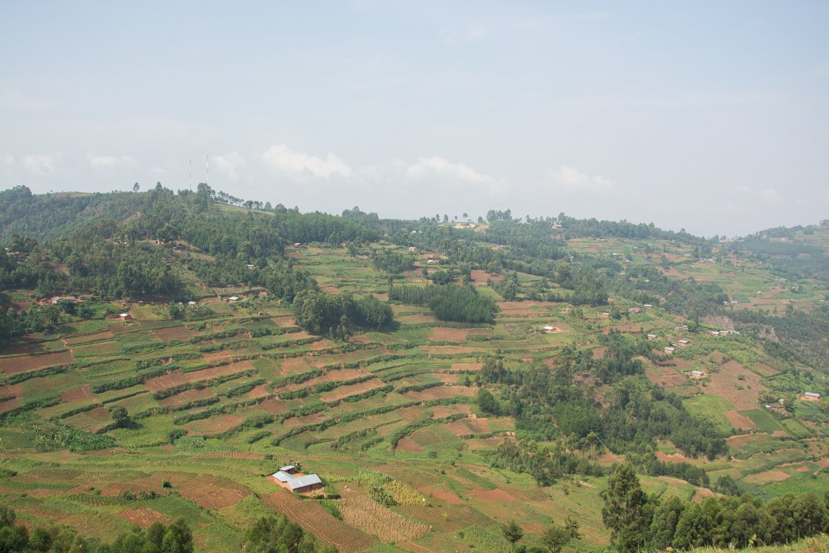 Frohgemut und zuversichtlich verlassen wir um 10:30 das Overland Resort am Lake Bunyonyi. Die relativ gute Piste führt uns am See entlang und bietet immer wieder atemberaubende Ausblicke auf ein fruchtbares Land. Hart ist das Leben auch hier, doch irgendwie wirken die Hütten gepflegter als am Vortag, geräumiger, sind oft richtig gemauert und gut gedeckt. Zwischendurch stehen sogar ein paar Villen, vielleicht Großgrundbesitzer. Dabei sind die Felder klein und an steilen Hängen: Das Leben ist auch hier hart!