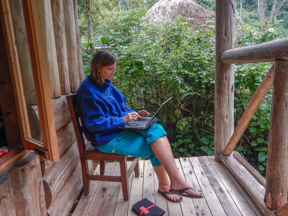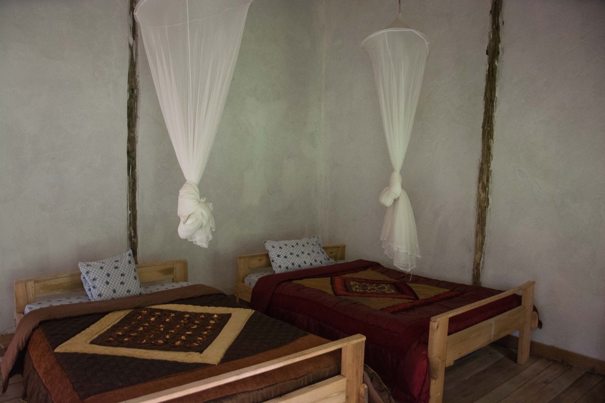 Im Park treibe ich einen Ranger auf, Innocent mit Namen. Er sagt, wir müssen um viertel vor acht beim Briefing sein. Ich frage ihn, wo wir Campen können, er nennt mir das Nshongo Camp und bringt uns hin. Das Konzept, dass wir am Dach des Autos schlafen, ist ihm fremd, denn das Camp ist nur zu Fuß erreichbar. Wir könnten davor stehen bleiben, wild, aber das will Tomy nicht. Gloria, die Managerin, bietet uns ein Zimmer an, Vollpension für 38 Dollar pro Person. Mich lockt das warme Bett. Es ist nachts ganz schön kalt und feucht, ich möchte morgen früh nicht in der Kälte alles zusammenpacken müssen. Früh morgens auch noch. Außerdem habe ich leichte Halsschmerzen, für das Gorilla Tracking muss ich gesund sein. Wir bleiben.