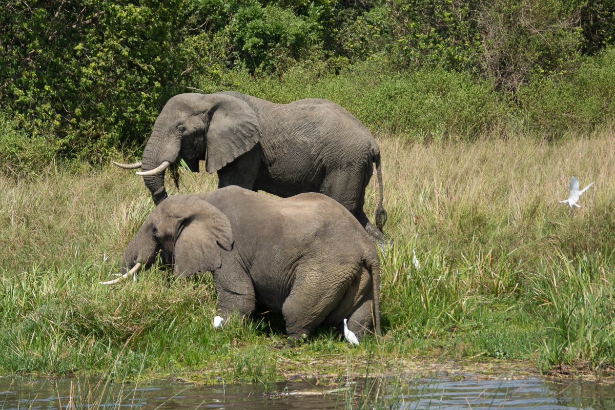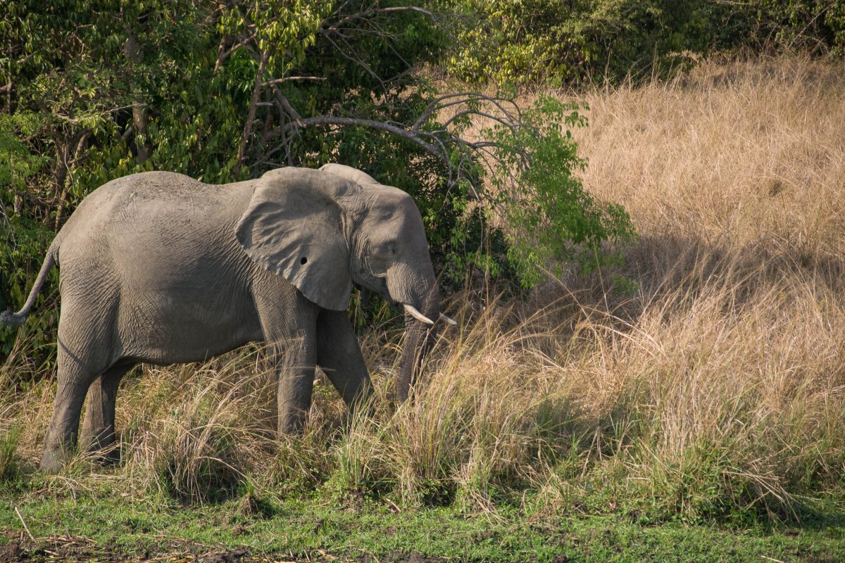 Unterwegs treffen wir auch auf Oribis, riesige Uganda-Kob Herden, Löwen, Elefanten, Büffel, Patak-Monkeys und Waterbucks. Wir finden den Wilderness-Campingplatz, der viel kostet, weil du einen Ranger mitnehmen sollst und nichts bietet – außer einen Blick aufs Delta, der Mündung des Victoria-Nils in den Albertsee, auf Fischer, Nilpferde, Saddleback-Störche, jede Menge Kobs und Waterbucks und Affen und nachts brüllen die Löwen rund ums Camp! Für mich einer der schönsten Plätze der Erde! Mir tut es leid, dass wir die vorige Nacht nicht hier waren!