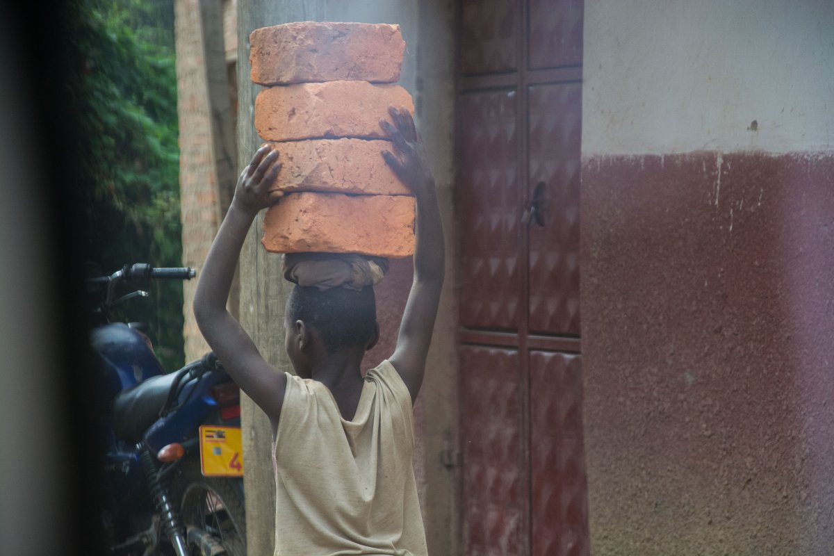 Kinder in Uganda – von Kampala bis Ishasha kommen sie von überall herangelaufen und winken, in den anderen Regionen sind sie zurückhaltender. Oft tragen sie einen Kanister auf dem Kopf oder ein jüngeres Kind am Rücken und winken trotzdem. Ihre Aufgabe ist es meist, Wasser zu holen. Wir haben Jungs, nicht älter als fünf gesehen, die alleine der Hauptstraße entlang Kanister schleppten. (In dem Zusammenhang – den nächsten der über die schrecklichen Zustände in Deutschland jammert, setze ich in einem ugandischen Dorf, weit ab von Strom und Wasser, aus!). Kinder helfen ihren Eltern, sie haben ihre Aufgaben, ohne denen die Familie nicht überleben kann. Ich halte das nicht unbedingt für das Schlechteste, es bleibt genug Zeit für Langeweile. Spielzeug in unserem Sinn gibt es nicht. Kein Lego, kein Plastik, keine Puppe, schon gar nichts Elektronisches. Meist rollen sie einen alten Reifen mit einem Stock die Straße entlang. Ein Kind, mit einem Roller aus Holz ist ein König! Den meisten scheint allerdings schlicht fad zu sein. Eigentliche Kinderarbeit, also bezahlte Arbeit, die Kinder verrichten, wie Steine klopfen, haben wir keine gesehen – mit vielleicht einer Ausnahme: Etwa 10jährige, die am Markt in Jinja Bohnen auslasen.