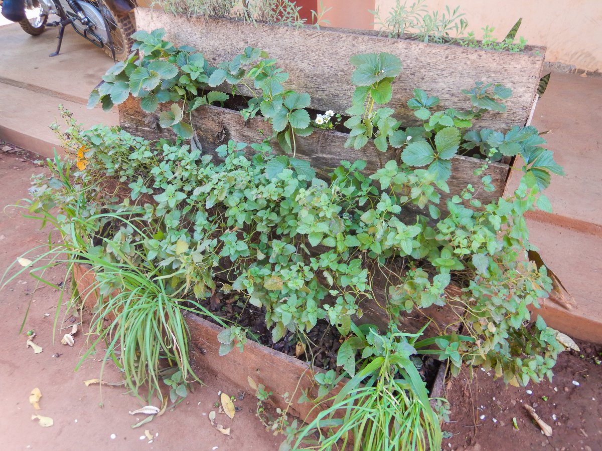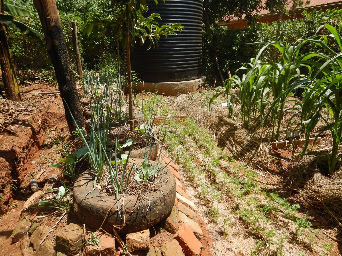 Als Gärtnerin musste ich natürlich den Versuchs- und Vorzeigegarten von Afird besuchen. Darin wollen sie verschiedene Wege aufzeigen, wie die Menschen auf steinigem Boden oder kleinstem Raum Gemüse anbauen können oder eine Biogasanlage betrieben können. Es gibt Versuchsgärtchen, in denen mit und ohne Mulch bzw. Dung gearbeitet wird, um die unterschiedliche Entwicklung der Pflanzen zu zeigen. Auch Bewässerung ist ein Thema: