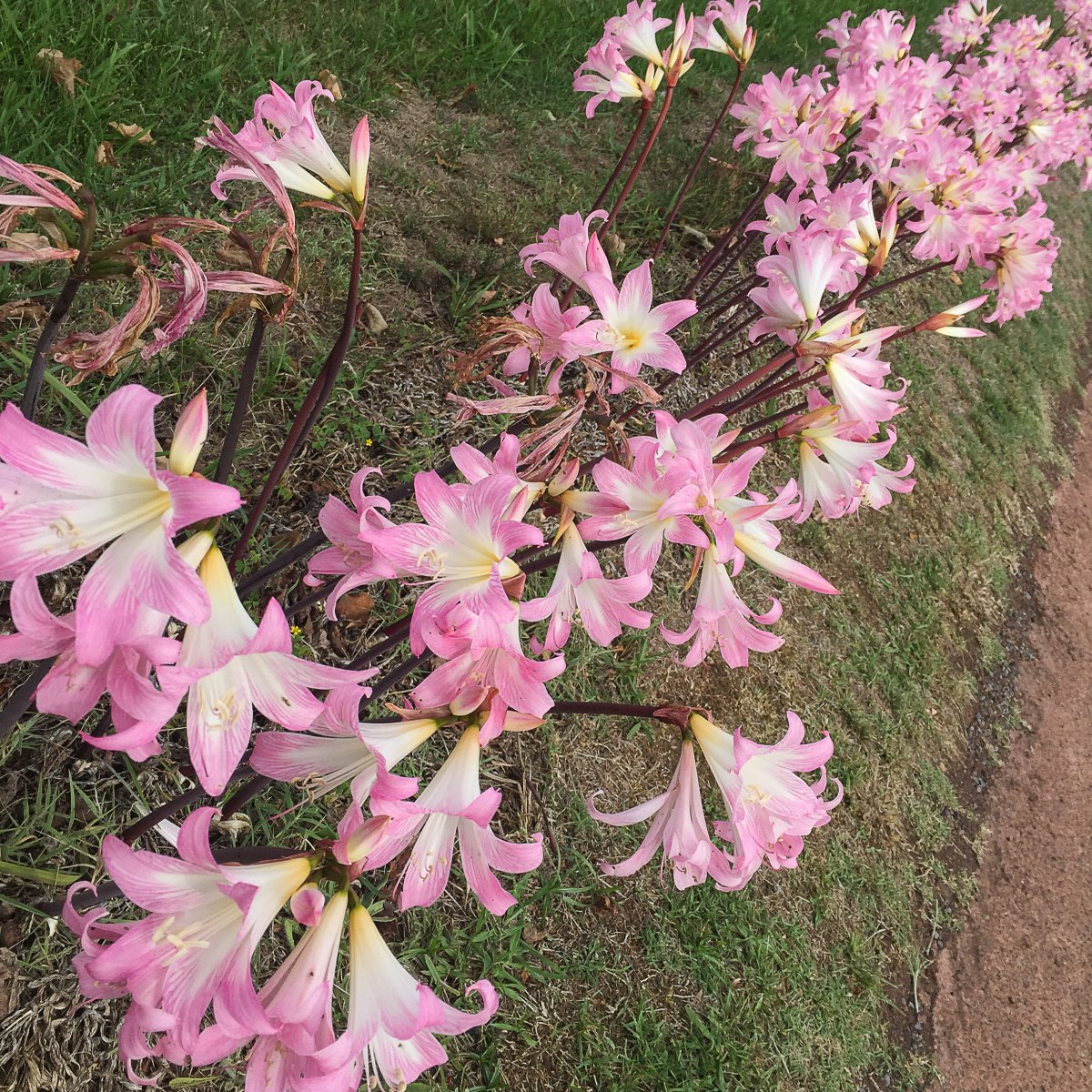 Die Hortensien auf der Insel waren fast alle verblüht, doch die Belladonnalilien mit dem bezaubernden Namen Mädchen-geht-zur Schule, öffneten täglich mehr ihrer zartrosa Blüten – vorzugsweise am Wegesrand oder auch auf dem Schulweg. Lustigerweise heißen sie auf Englisch Naked Ladies – nackte Frauen.