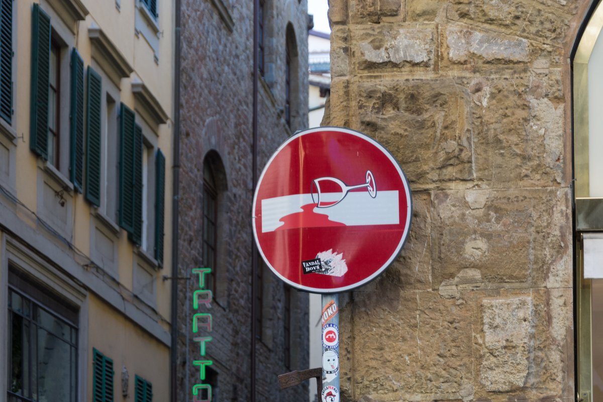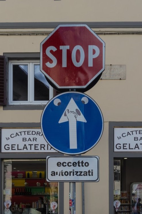 Verkehrschild von Clet Abraham in Florenz