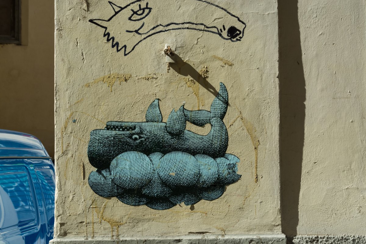 In Florenz sind viele seiner Werke teilweise übermalt oder bekritzelt, die Farbe blättert. Klar, Street-Art ist nichts für die Ewigkeit, trotzdem dachte ich: „Blub war wohl schon lange nicht mehr in Florenz…“