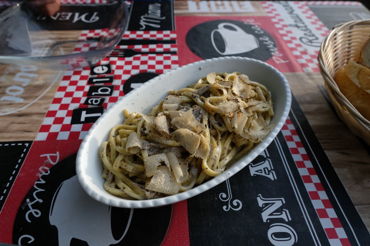Fein Essen am Monte Gazzo, dem Berg hinter der Werft.