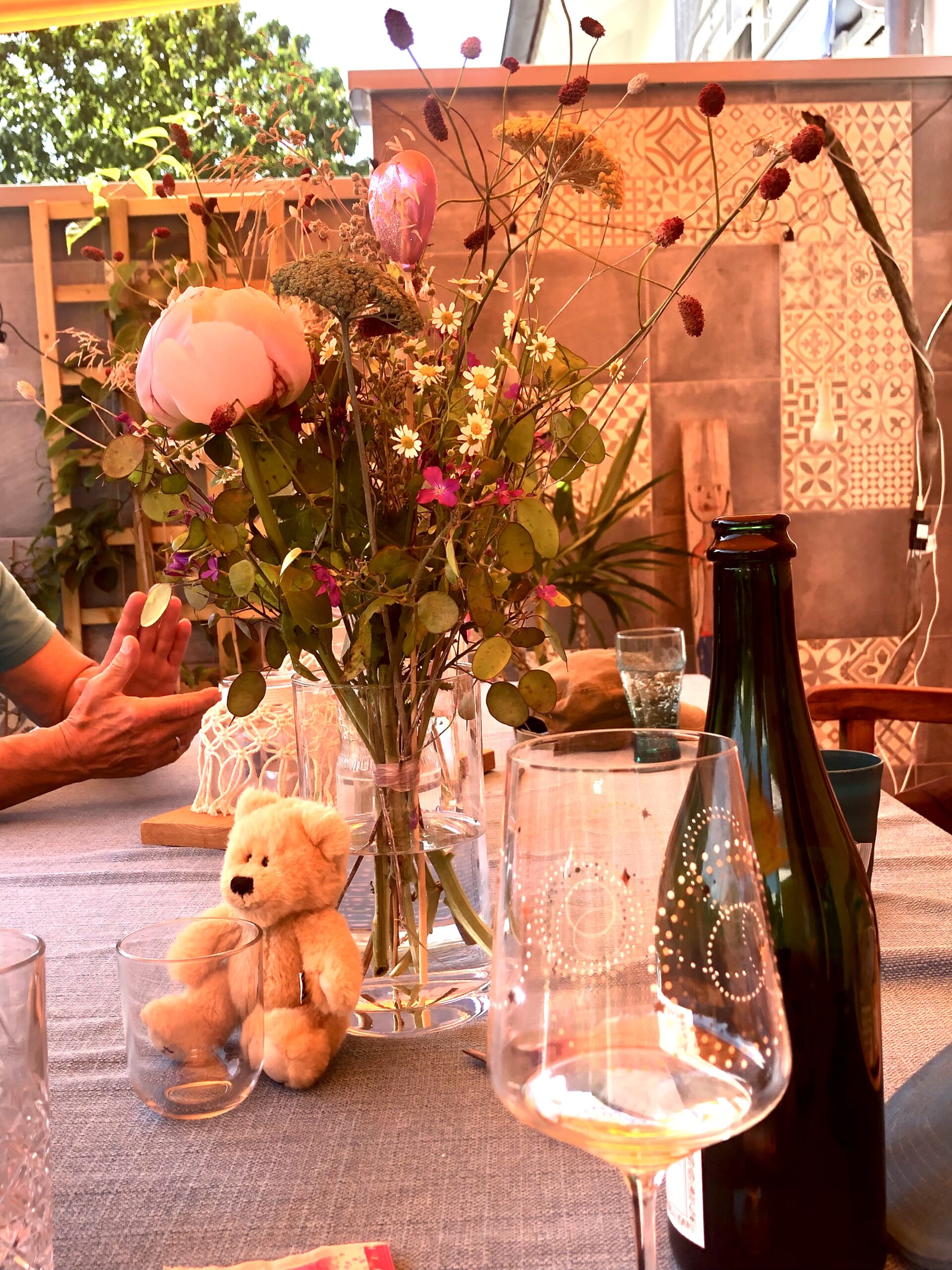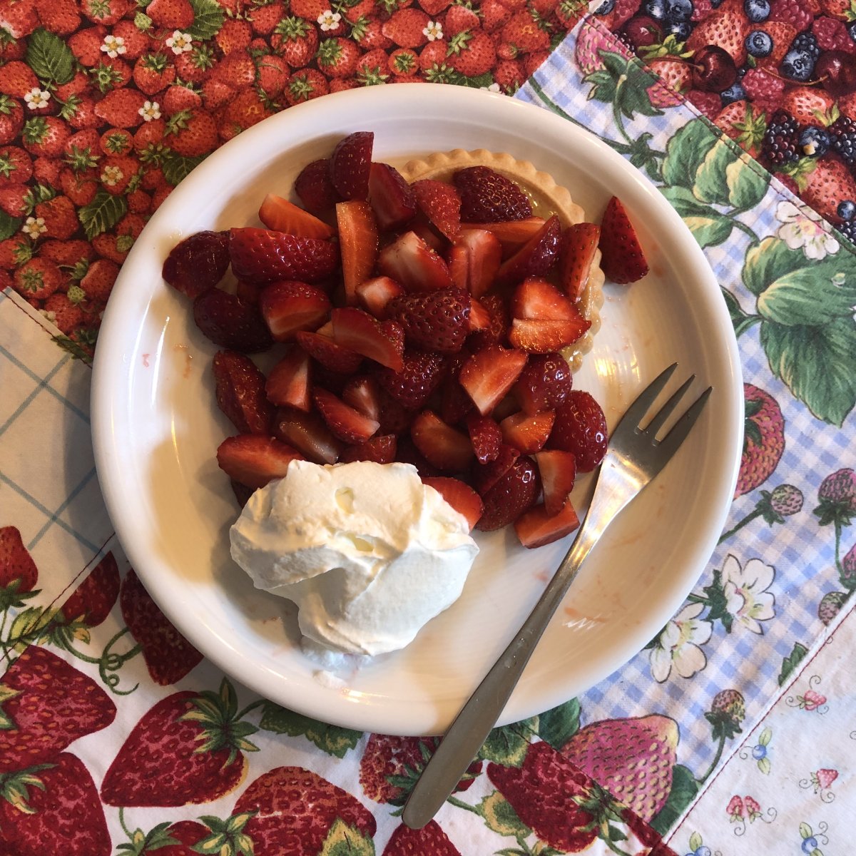 Wir feierten auch drei Geburstage, ernteten und aßen eine Menge Erdbeeren, ich ging mit andrer Leut’s Hunden spazieren, malte, nähte, strickte …