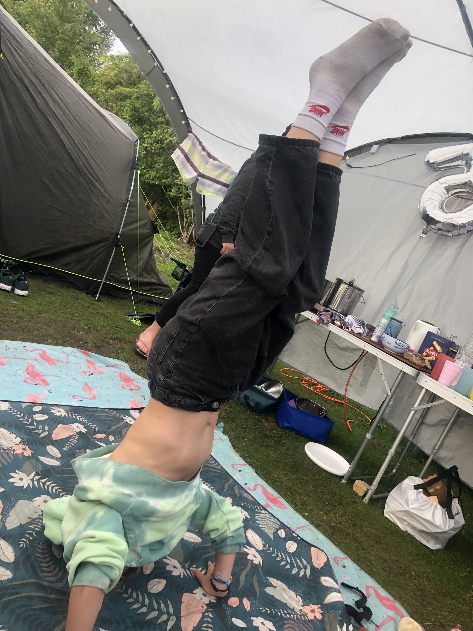 Das Enkelmädchen übt Akrobatik? Ja, dabei stand zu Pfingsten noch gar nicht fest, was in der Schule in der Projektwoche Zirkus gelernt wird. Es kam jedenfalls ein echter Zirkus: Die Eltern, der Förderverein und die Zirkusleute bauten gemeinsam das Zelt auf. Alle Schüler konnten sich eine Zirkusnummer aussuchen: Feuerteufel, Jongleure, Trapez, Akrobatik, Tauben und natürlich Clowns. Dann wurde geübt. Am Ende kam eine richtige Zirkusvorstellung mit tollen Nummern heraus: Die Jungen spielten den starken Mann und flogen durch die Manege, zwei Mädchen ließen Tauben tanzen, Akrobaten flogen am Trapez durch die Luft, Clowns feierten eine Party, die Jongleure spielten mit Bällen und das Enkelmädchen stand Kopf – hoch in der Luft, auf der Hand eines Artisten!