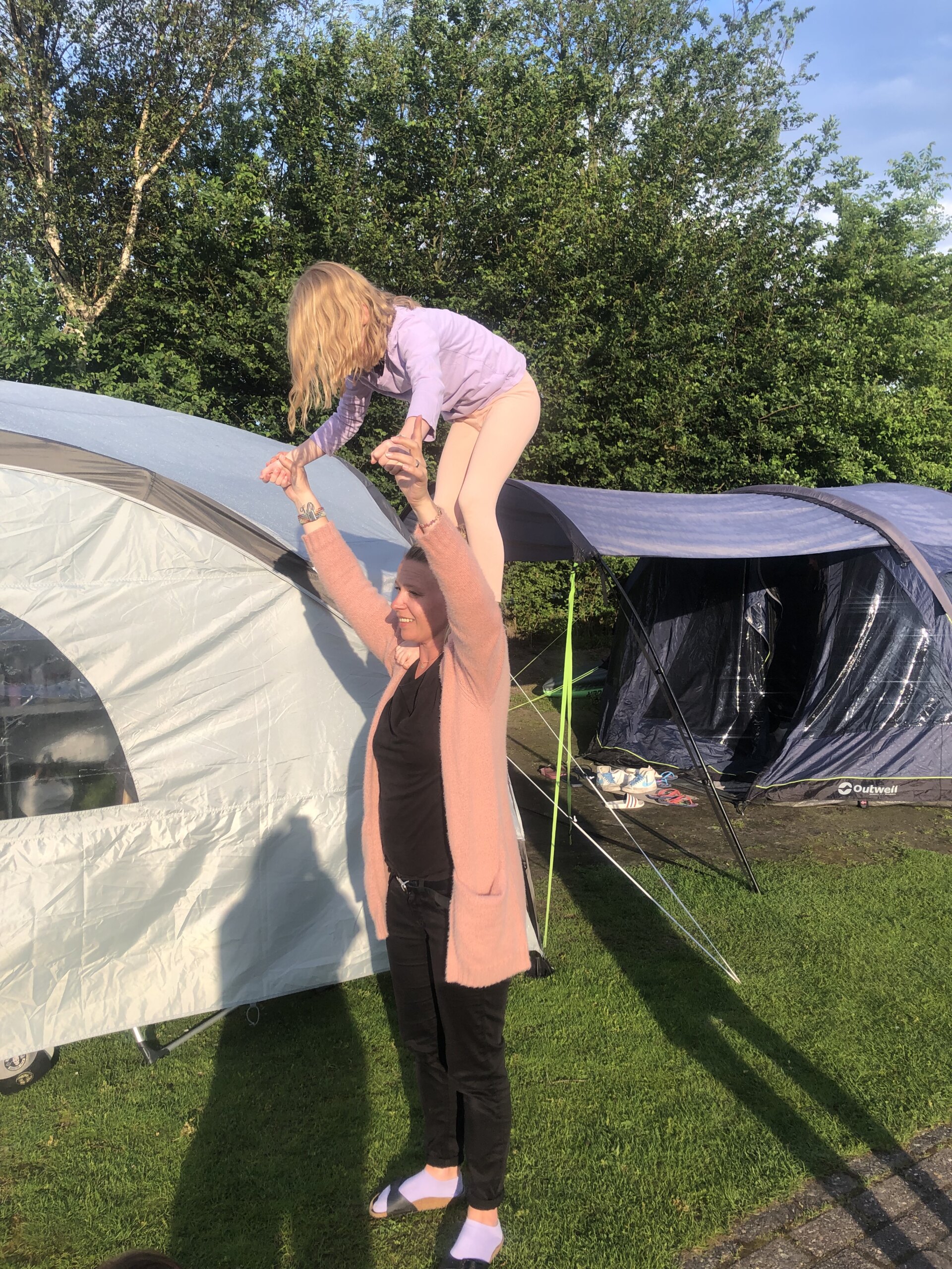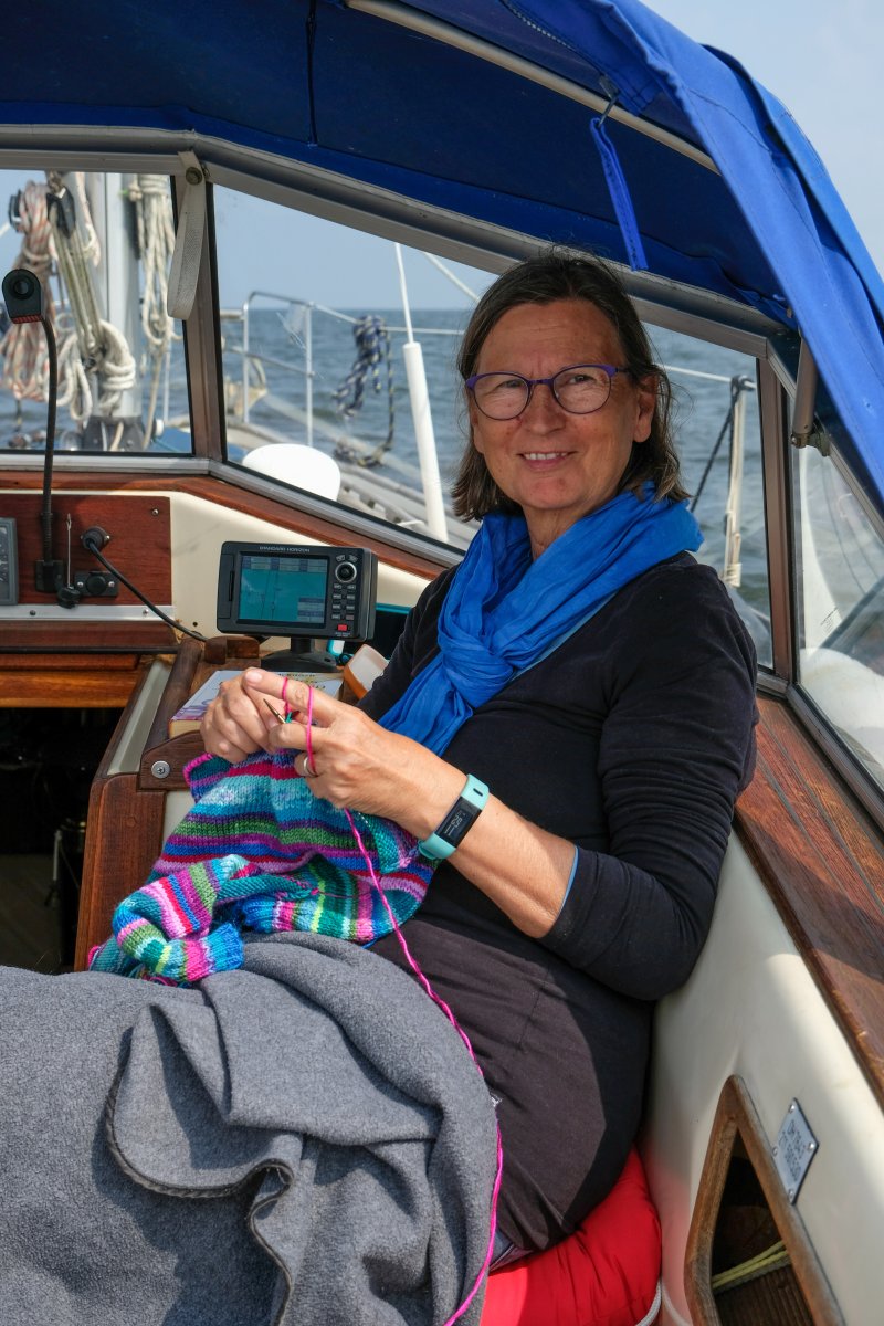 Zu Pfingsten, genauer am Freitag davor, motorten Tomy und ich quer durchs Marker Meer und das Ijsselmeer nach Norden, nach Makkum. Dort waren unsere Töchter samt Familien zelten. Der älteste Enkeljunge surfte, die jüngeren bauten Sandburgen, Tomy und ich spazierten durch Makkum, wir grillten zusammen, das älteste Enkelmädchen und der mittlere Enkeljunge übten Akrobatik auf der Mutter und der Matte, Tomy und ein Schwiegersohn nahmen zwei Stunden Unterricht in Katamaransegeln, und ich war mal hier, mal dort, meist mit Stricknadeln in der Hand.