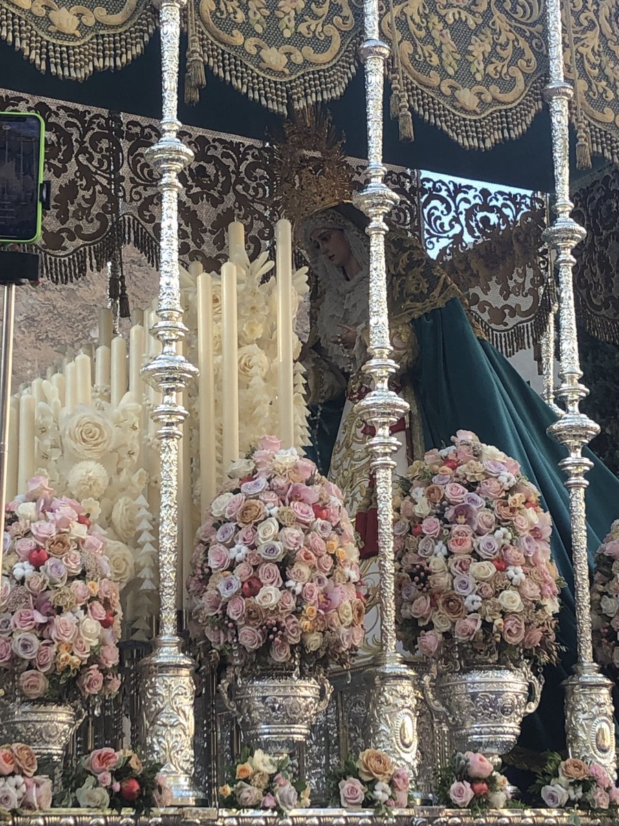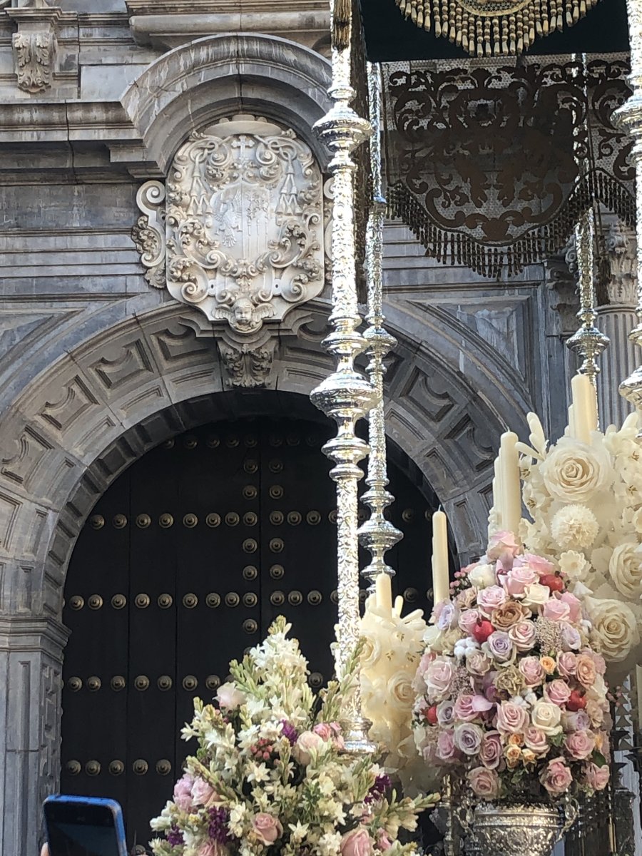 Abends, auf dem Weg ins Restaurant nehmen wir schon gar keinen Fotoapparat mehr mit, wir haben bisher gut 600 Fotos alleine in Granada gemacht. Und prompt geraten wir in eine Prozession! Eine mit Blumen, Kerzen und Granatäpfeln geschmückte Marienstatue wird durch die Straßen von Granada getragen. Meine Freundin kann etwas Spanisch, so findet sie heraus, dass für den Frieden in der Welt gebetet wird…
