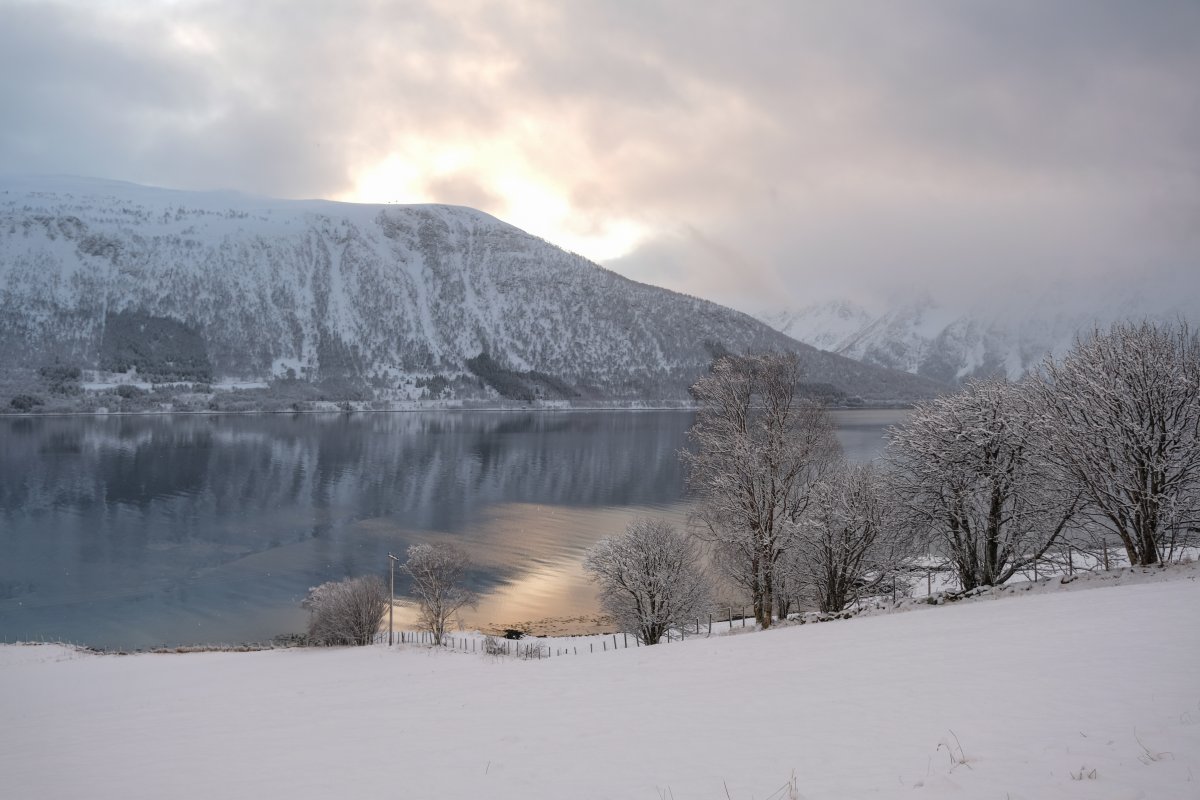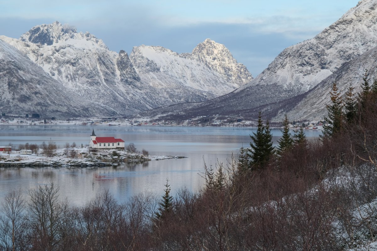 Das Wetter bietet alles, von dichtem Schneefall zu strahlendem Sonnenschein. Das wechselnde Licht macht alles noch beeindruckender. Dieses Lichtspiel, dieses winterliche, kalte Licht ist etwas ganz Besonderes, es verzaubert. So wie die Sonne Afrikas, nur halt ganz anders. Das Wasser in den Fjorden ist am Morgen von einem einzigartigen Eisblau, einem sanften Türkiston. Die schneebedeckten Berge strahlen in der aufsteigenden Sonne, dazu der Kontrast des dunklen Felsens und der rotbraunen oder senfgelben Häuser – die Farben der winterlichen Vesterålen und Lofoten sind ein Wintermärchen.