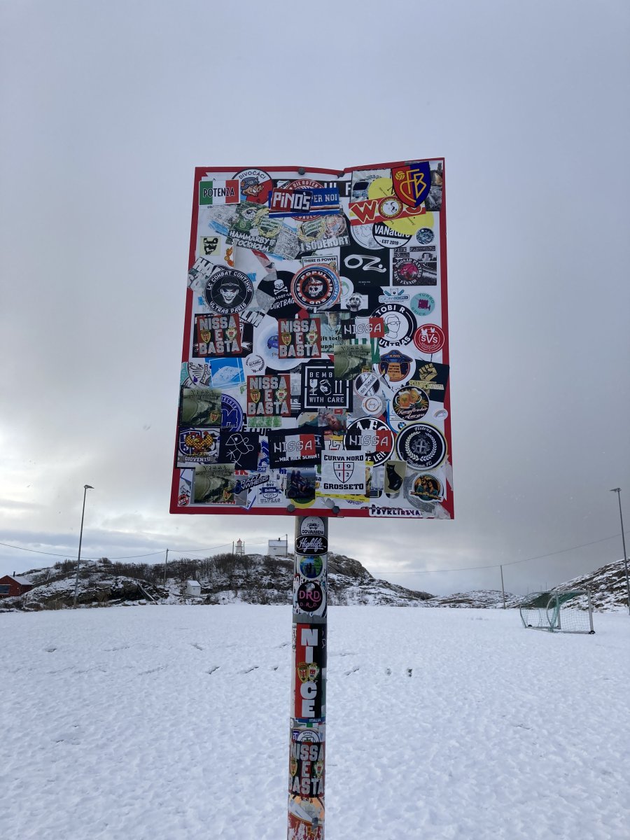 Am letzten Tag in Svolvær fahren wir zu dem berühmtesten Fußballplatz der Welt nach Henningsvær (Der Link führt zu einem Foto). Die Fahrt entlang des Fjordes bietet wieder eine atemberaubende Szenerie und wilde Lichtspiele: Vor uns scheint die Sonne, hinter uns kommt der Schnee. Den Fußballplatz, der nur von oben spektakulär aussieht, erreichen wir gleichzeitig mit dem Schnee. Die geplanten Fotos mit der Drohne werden also quasi eingeschneit. Schade, denn die Straße dorthin wäre schön von oben. Andrerseits wäre das auch eine Verfälschung der erlebten Eindrücke.