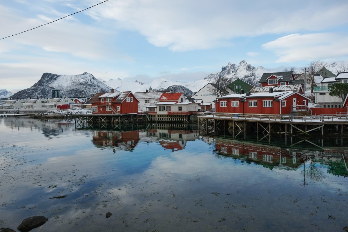 Wir bleiben an viel zu vielen Orten stehen, machen einen Abstecher nach Nusfjord. Dieses Fischerdorf ist mittlerweile ein Freilichtmuseum, von dem wir mehr erwartet haben. Es ist den Abstecher und den Eintritt durchaus wert, das Internet hat nur unsere Erwartungen zu hochgeschraubt. Jedenfalls sind wir dadurch erst gegen drei Uhr im fotogenen Himnøy. Die Sonne steht jetzt so tief, dass kaum mehr ein tolles Foto zu machen ist. Schade! Denn jetzt kommen noch einige schöne Orte, Reine zum Beispiel, aber die Fotos geben nicht mehr viel her. Und Å? Da muss man im Winter nicht hin. Der helle Tag ist zu kurz, um in die Museen zu gehen. Die Fahrt dorthin ist allerdings ein Muss.
