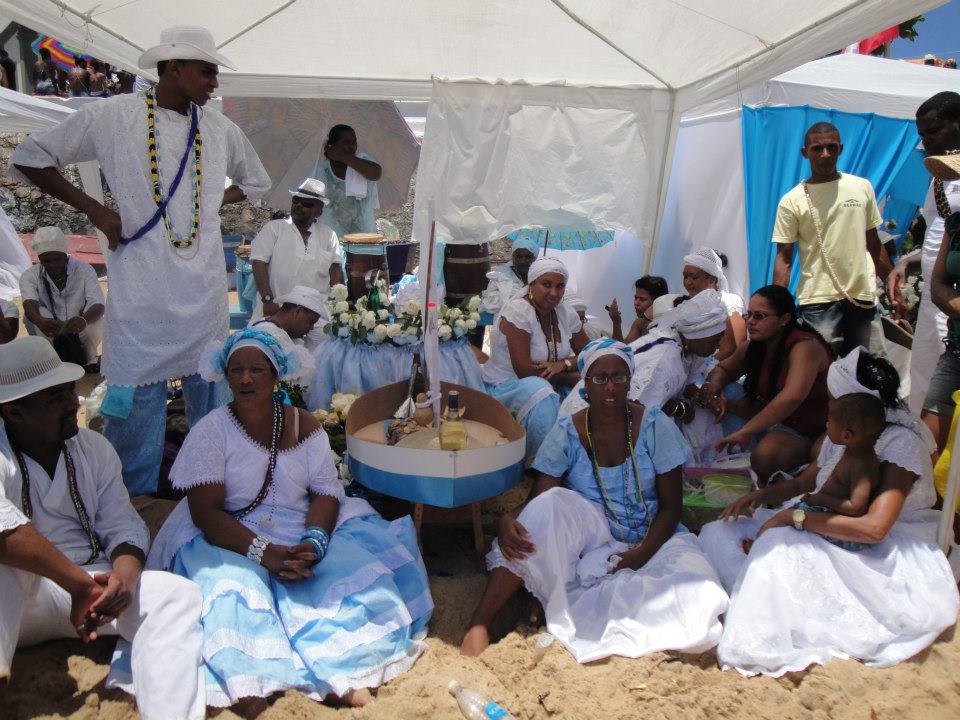 Auch in der Neujahrsnacht feiert in Brasilien jeder, der kann, weißgekleidet am Strand, springt um Mitternacht über sieben Wellen, wünscht sich etwas und wirft ein paar Blumen für Yemanja ins Meer.